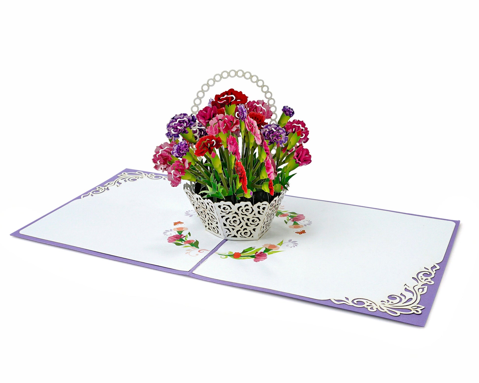 Carnation Flower Basket 3D Pop Up Card - Spring Collection