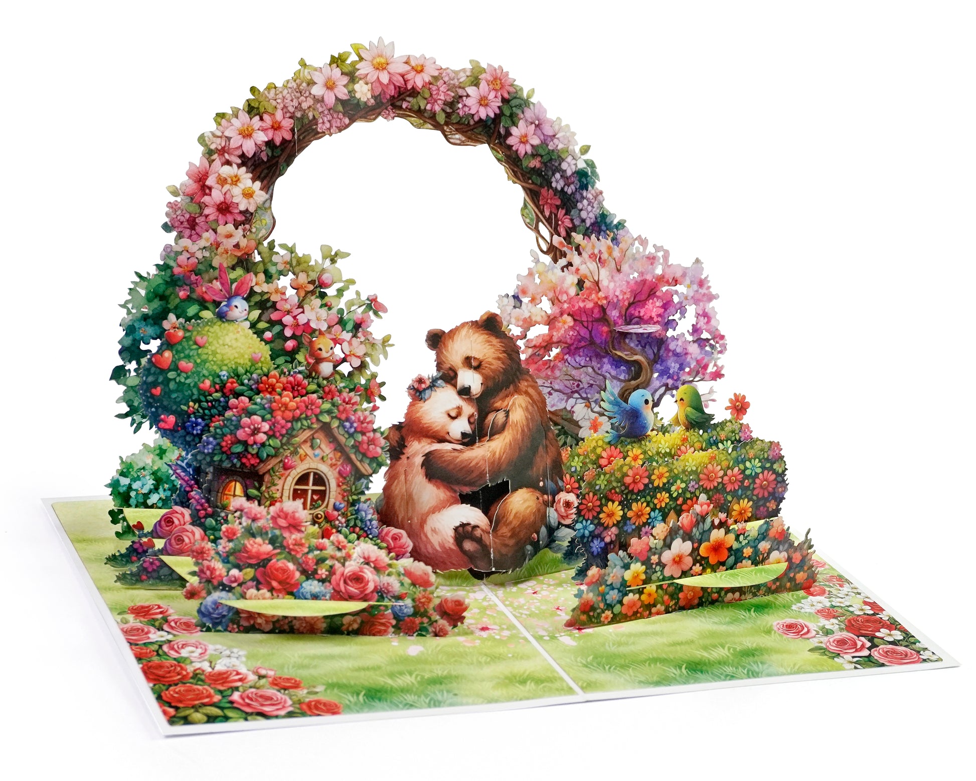 Celebrate love with this charming 3D pop-up card featuring an adorable bear couple. When opened, the card reveals an intricate paper sculpture of two bears sharing a tender moment—perfect for expressing your heartfelt emotions.