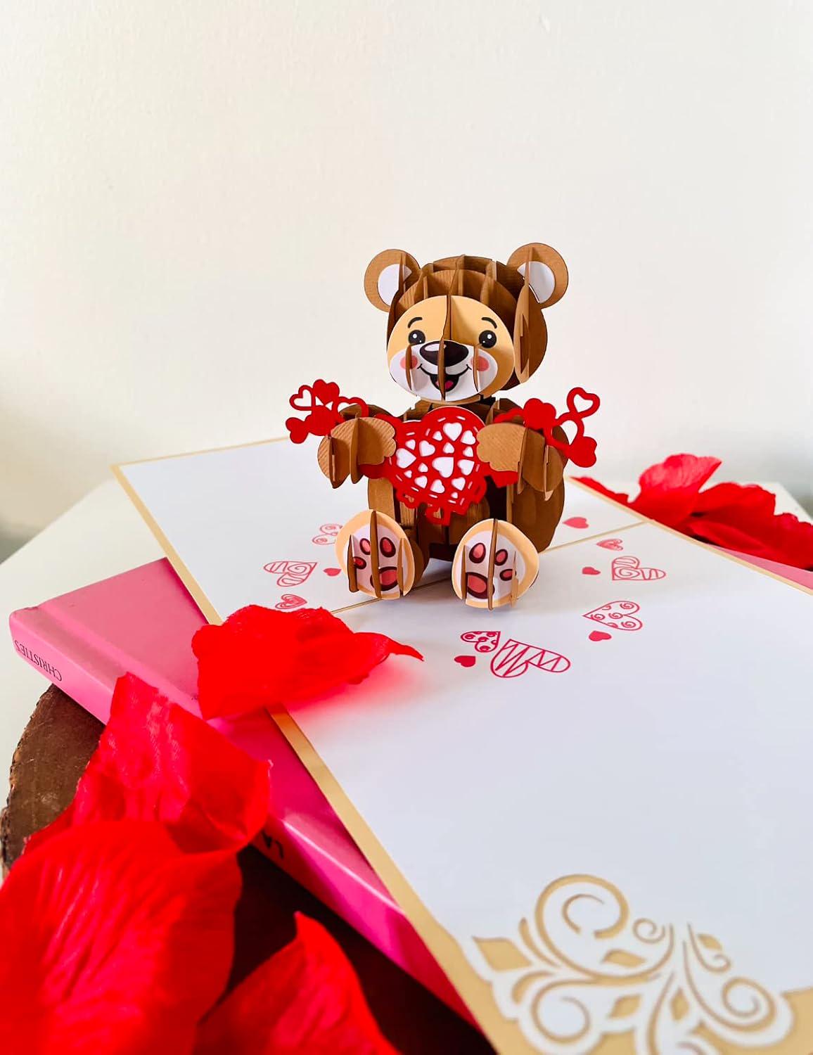 This sweet card combines romance with playful charm. The adorable teddy bear design makes it a special keepsake that will be treasured and displayed, serving as a warm reminder of your love and thoughtfulness.