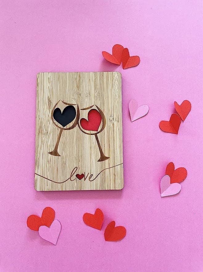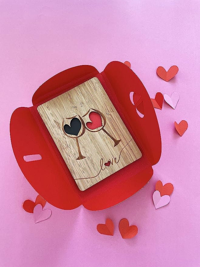 This unique bamboo card features an elegant wine glass toast design, making it the perfect invitation for a romantic date or celebration. Crafted from sustainable bamboo and presented in beautiful red gift envelope packaging, it's an eco-friendly way to express your feelings.